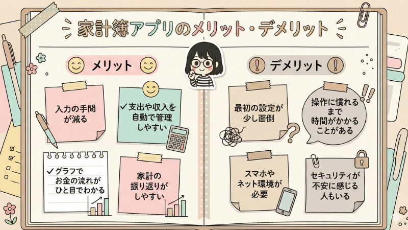 ・家計簿アプリ・手書きの家計簿、どちらにもメリット・デメリットがある。