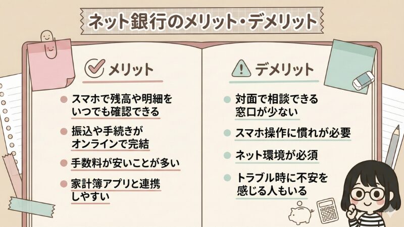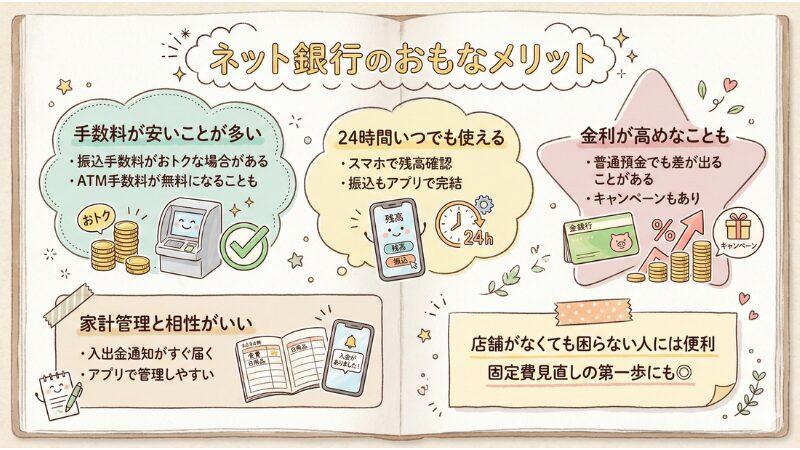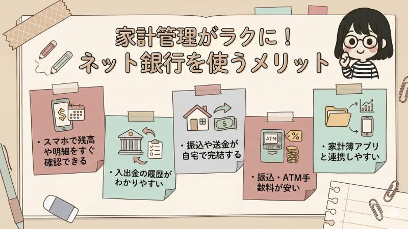 ネット銀行には、家計管理がラクになるメリットがたくさんあります。