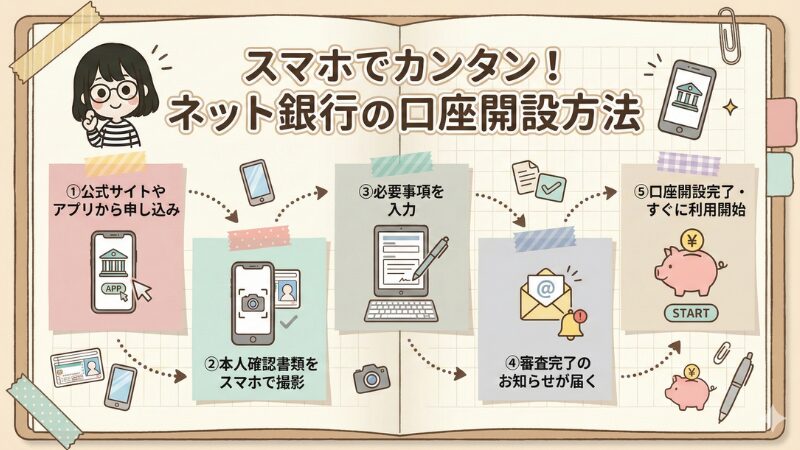 ネット銀行の口座開設方法は、とってもカンタンです。
