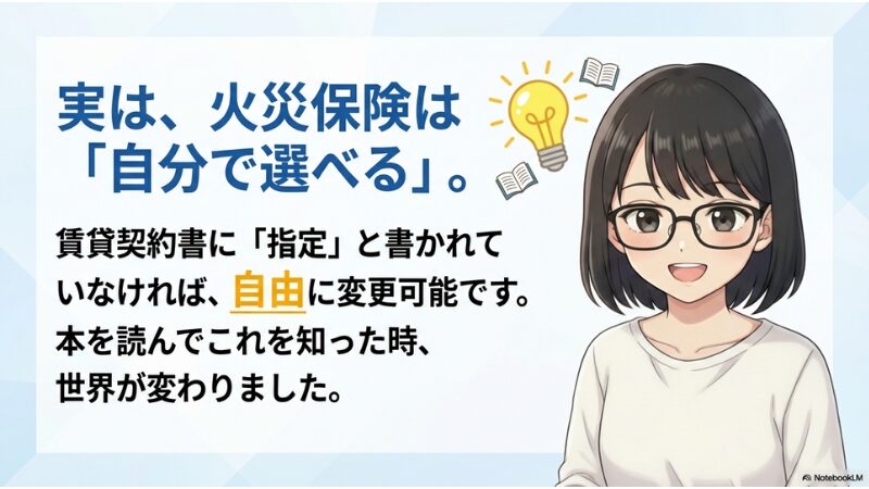 本を読んで、火災保険は自分で選べることを初めて知ったんだよ。