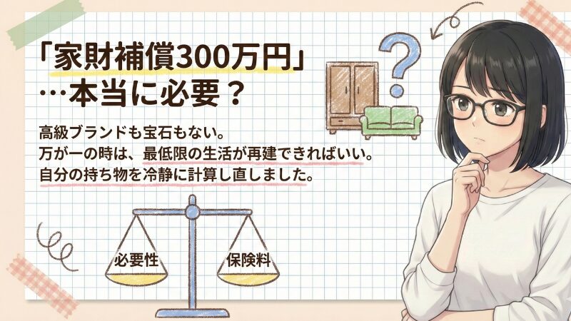 なんで、また乗り換えようと思ったのかというと、「本当に家財補償モリモリにする必要ある?」と、考えるようになったからです。