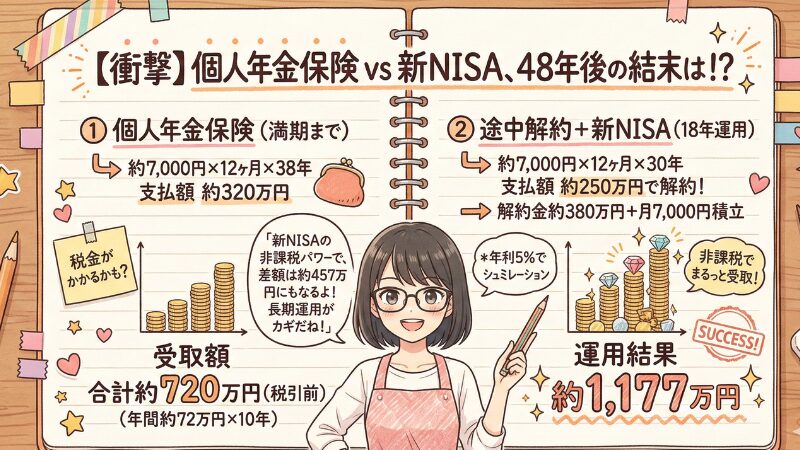 今回は、30年払い続けた個人年金保険を解約し、解約返戻金と毎月7,000円を新NISAで投資を始めたことについて書いています。