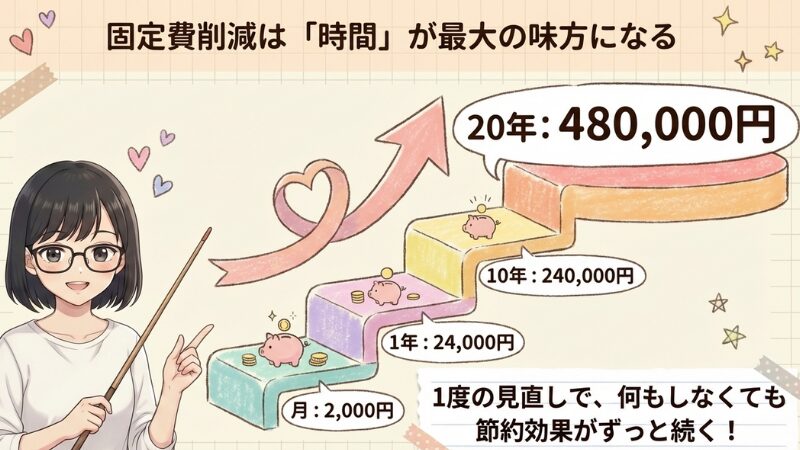 月2,000円の値下げは小さい金額に見えるけど、何もしなくても1度やれば一生続く固定費削減です。