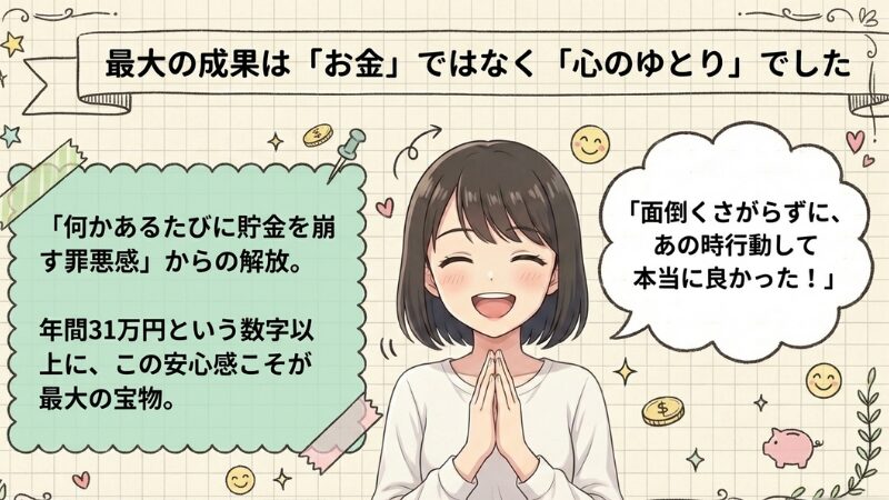 まとめ:固定費削減でお金だけでなく心のゆとりも得ることができた
