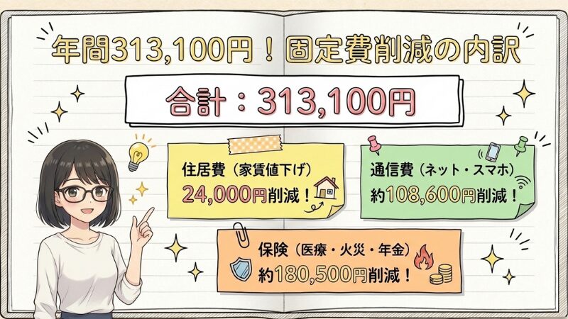 これまでの固定費削減額を合計すると、年間で約31万円も浮かすことができました。