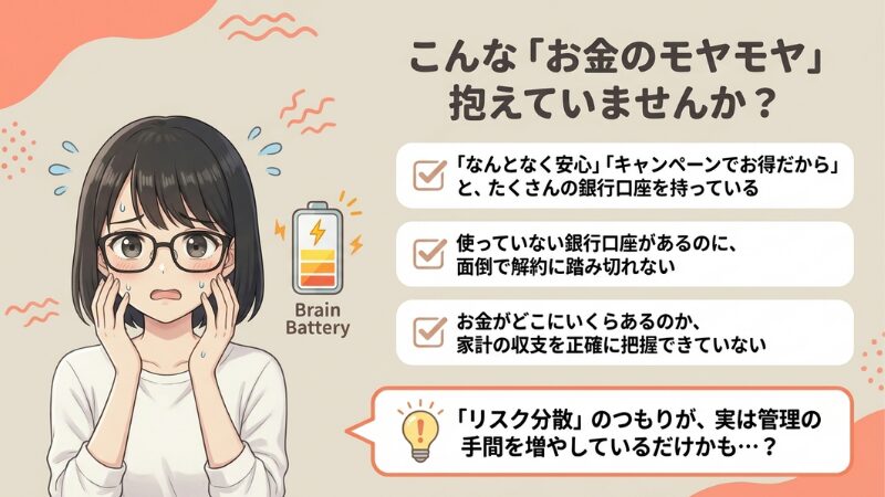 でも、銀行口座の整理を始めてから、すごく悩みました。