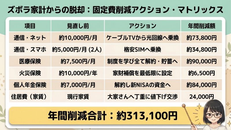今の私は家計管理に取り組み、年間で約31万円の固定費削減ができるようになりました。