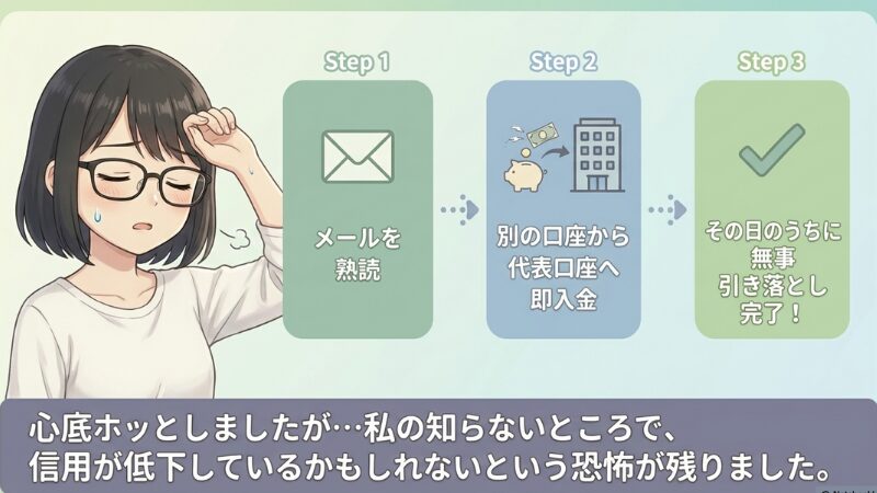 その日のうちにお金を入金して、無事に引き落としされましたが、もうブラックリスト入りかもしれないと、大パニックになりました。