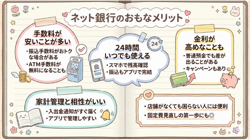 ネット銀行には、以下のようなメリットがあります。