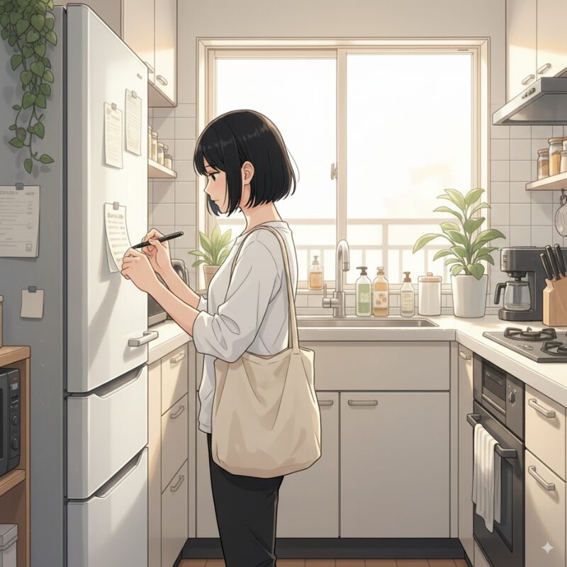 たまに買う調味料などは忘れがちなので、気がついたときに冷蔵庫に貼っているメモに書いておく。
